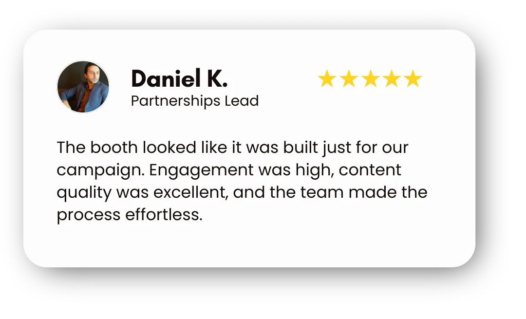 Every booth is thoughtfully crafted to reflect your brand or event vision. Clean design, seamless customization, and a polished look come standard.