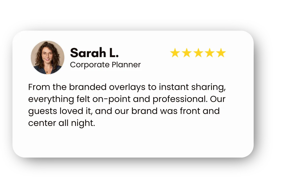 Enhance every printed photo with custom-designed borders that align with your event’s theme or celebration. Incorporate colors, patterns, logos, or text to create a polished, branded keepsake. These personalized borders turn each photo into a memorable takeaway your guests will love.